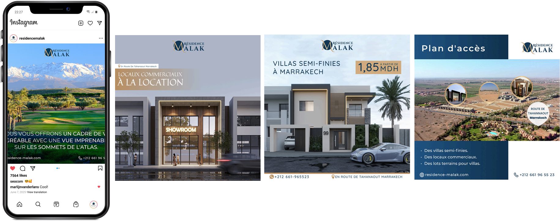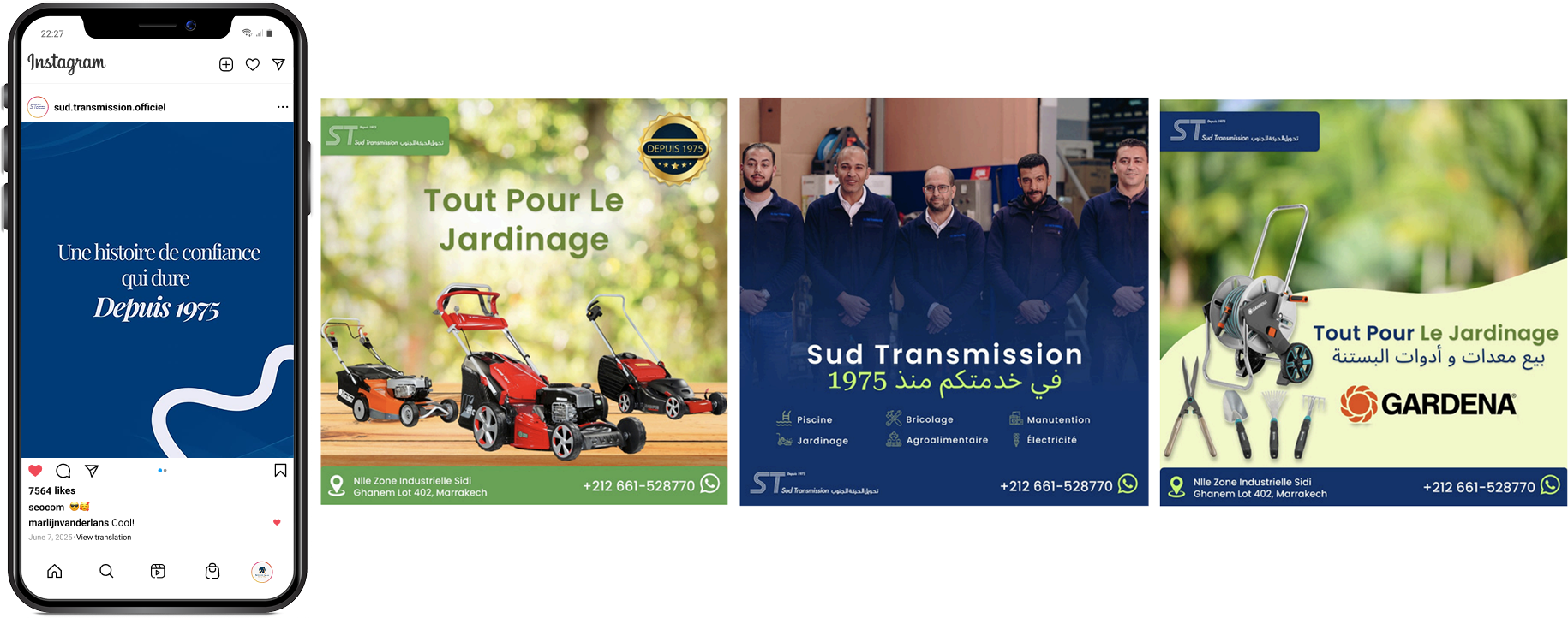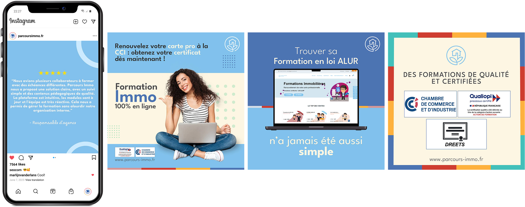 Visuels attractifs et textes engageants adaptés à chaque plateforme.